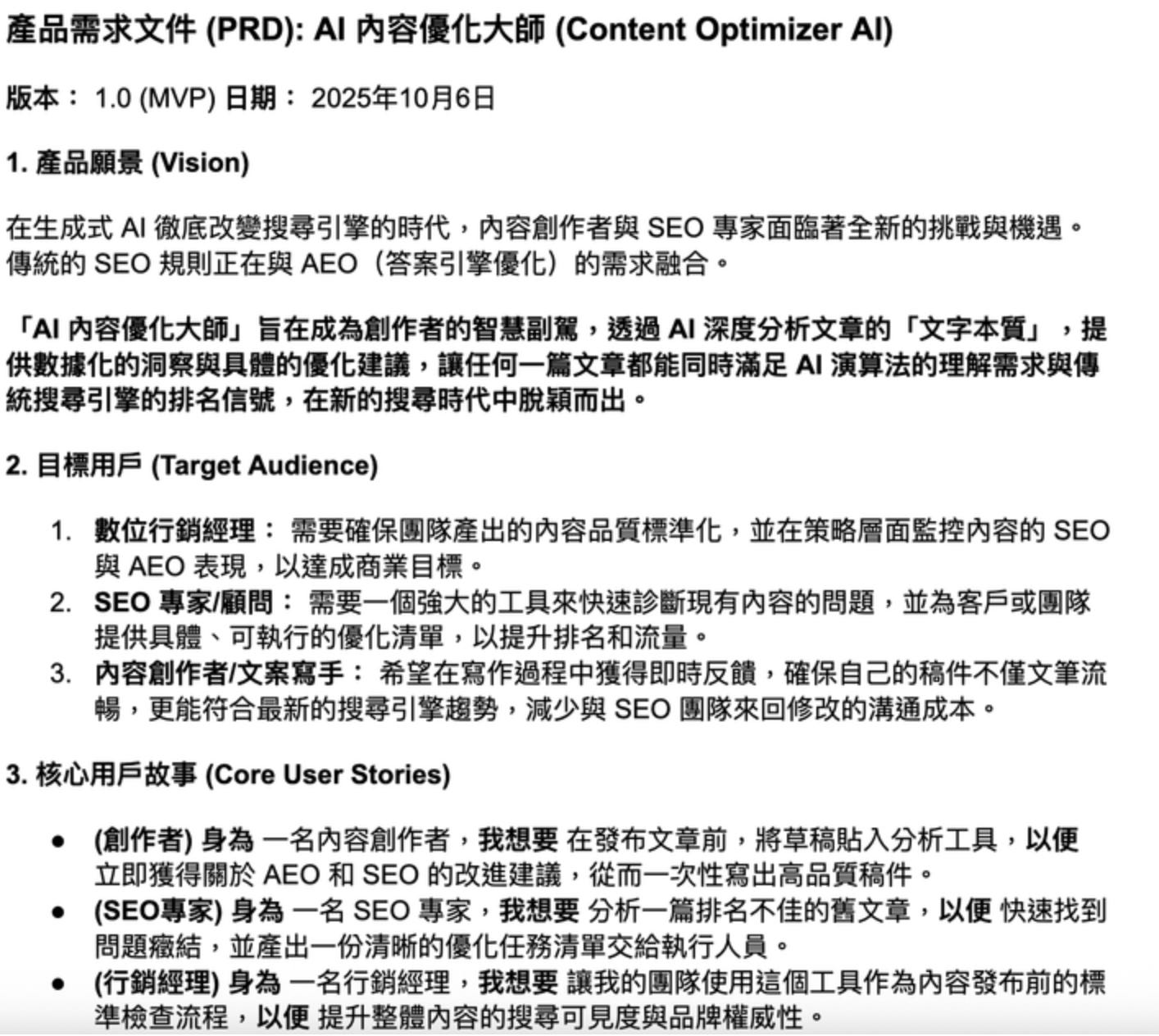 (圖片來源:邱煜庭方格子 - 打造屬於你的 Vibe Coding 戰隊:從夢想,到可運作的系統(二)好的產品,都始於一份會說話的需求)