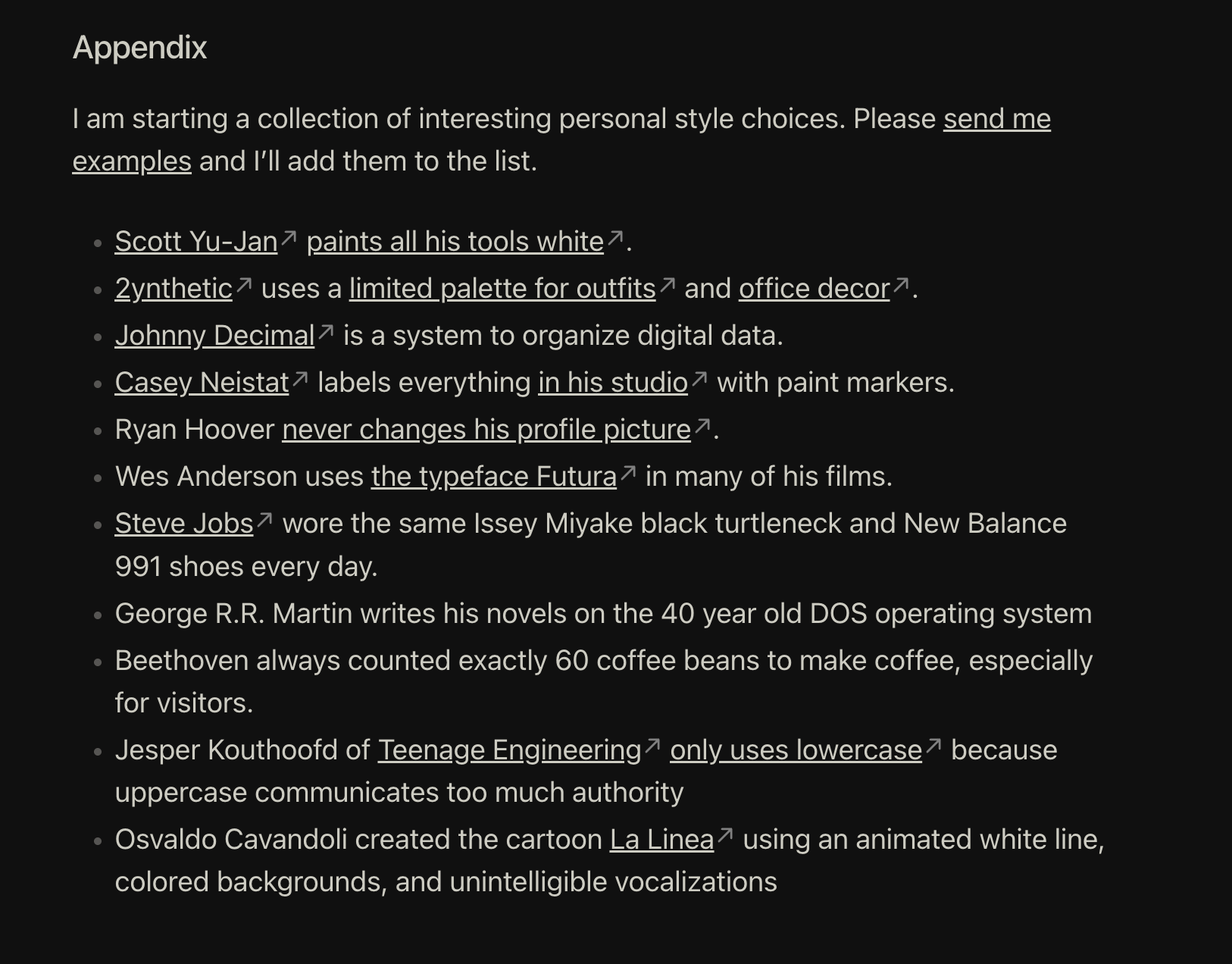 Steph Ango 舉了幾個他自己的風格準則給大家參考: